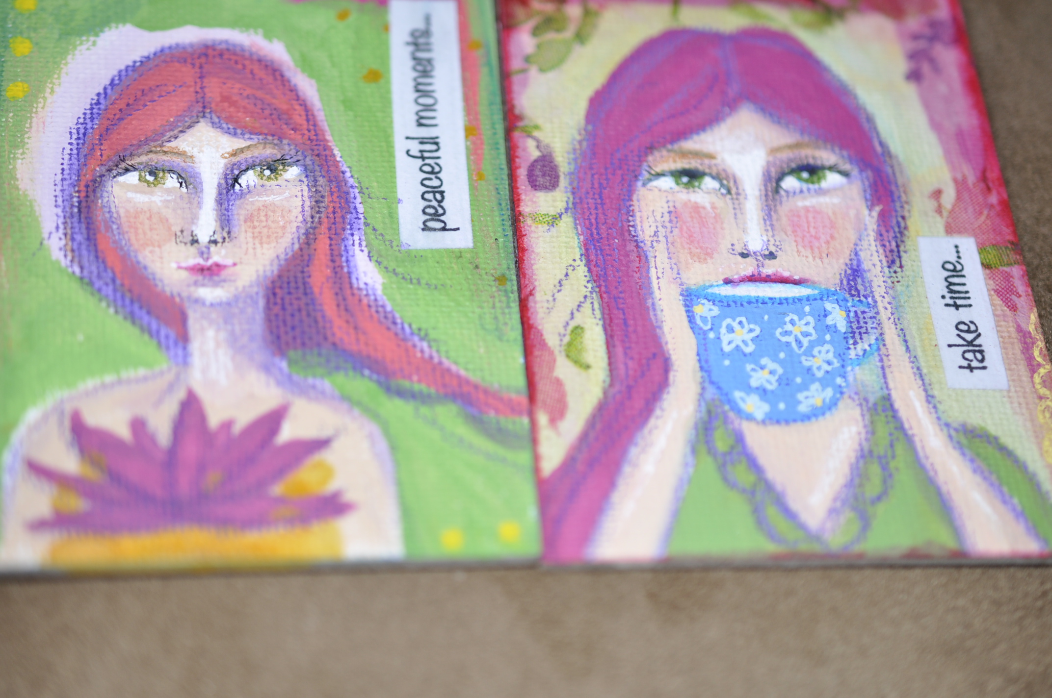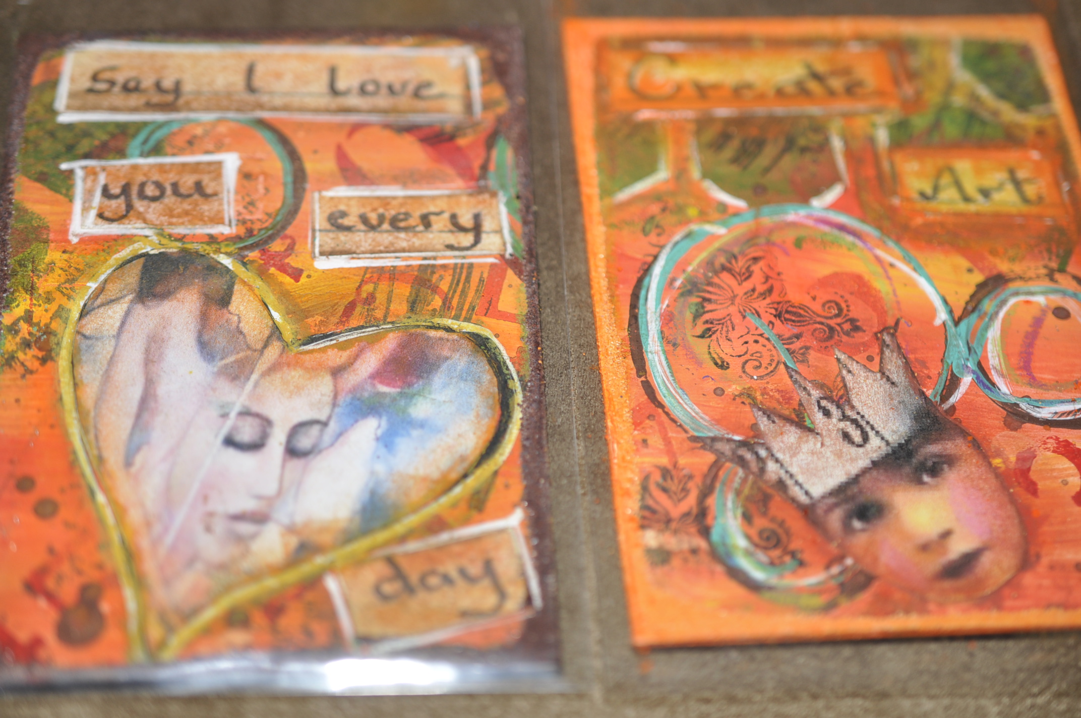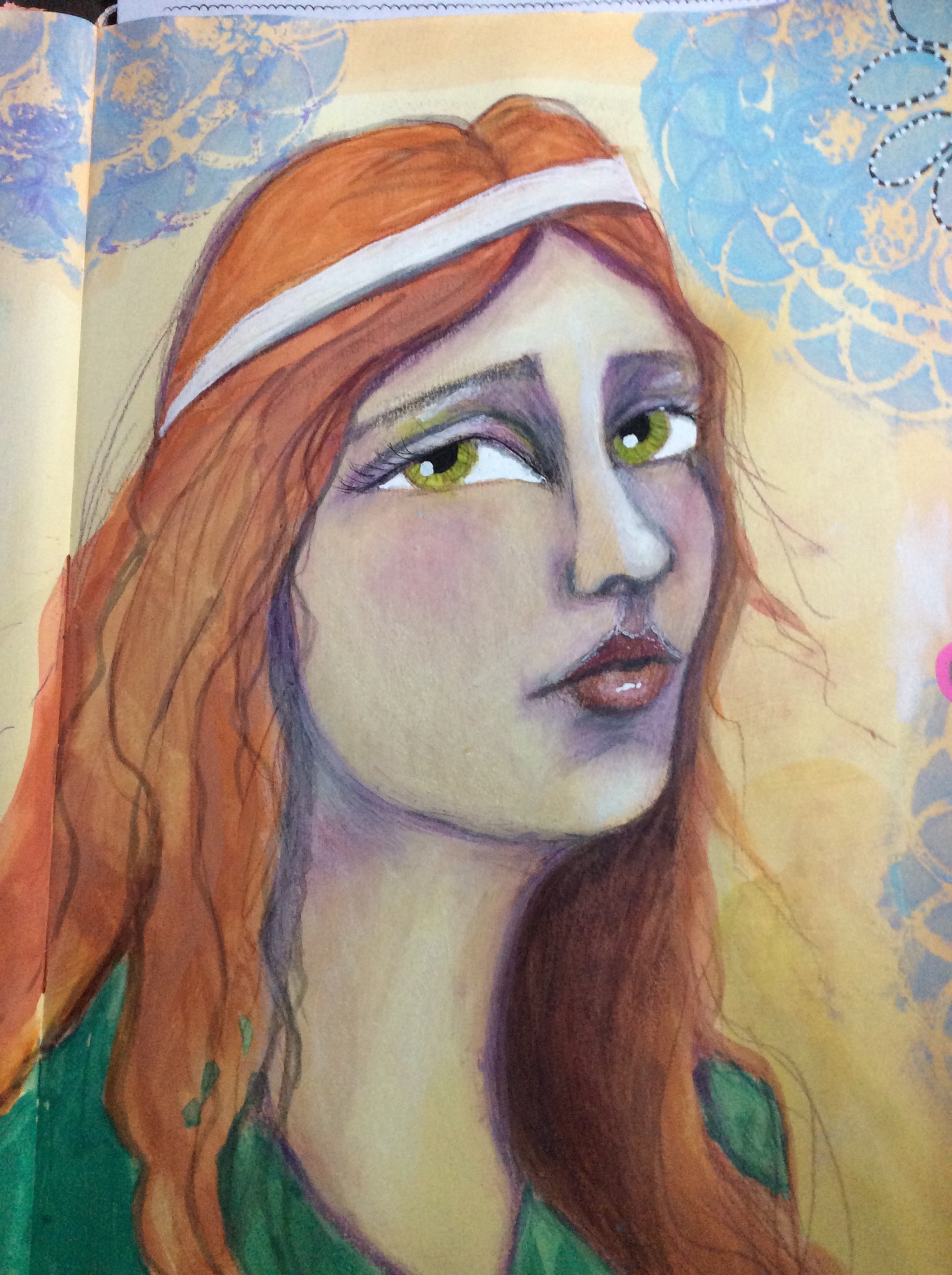 This is the first page in a art book, I am going to alter. This face is coloured with copic marker, I’ve had for 6 months and hardly used. I know I have a lot to learn about copic markers, but that is half the fun. The first layer was cheap gesso, which is a little too plasticy, than a stencil with ink and then I just went ahead and sketched and coloured the face. I am surprised the markers went as well as they did over the gesso. And they didn’t bleed through to the other side which was great. They are a bit too streaky though, but if I add more layers and some coloured pencils that might help.