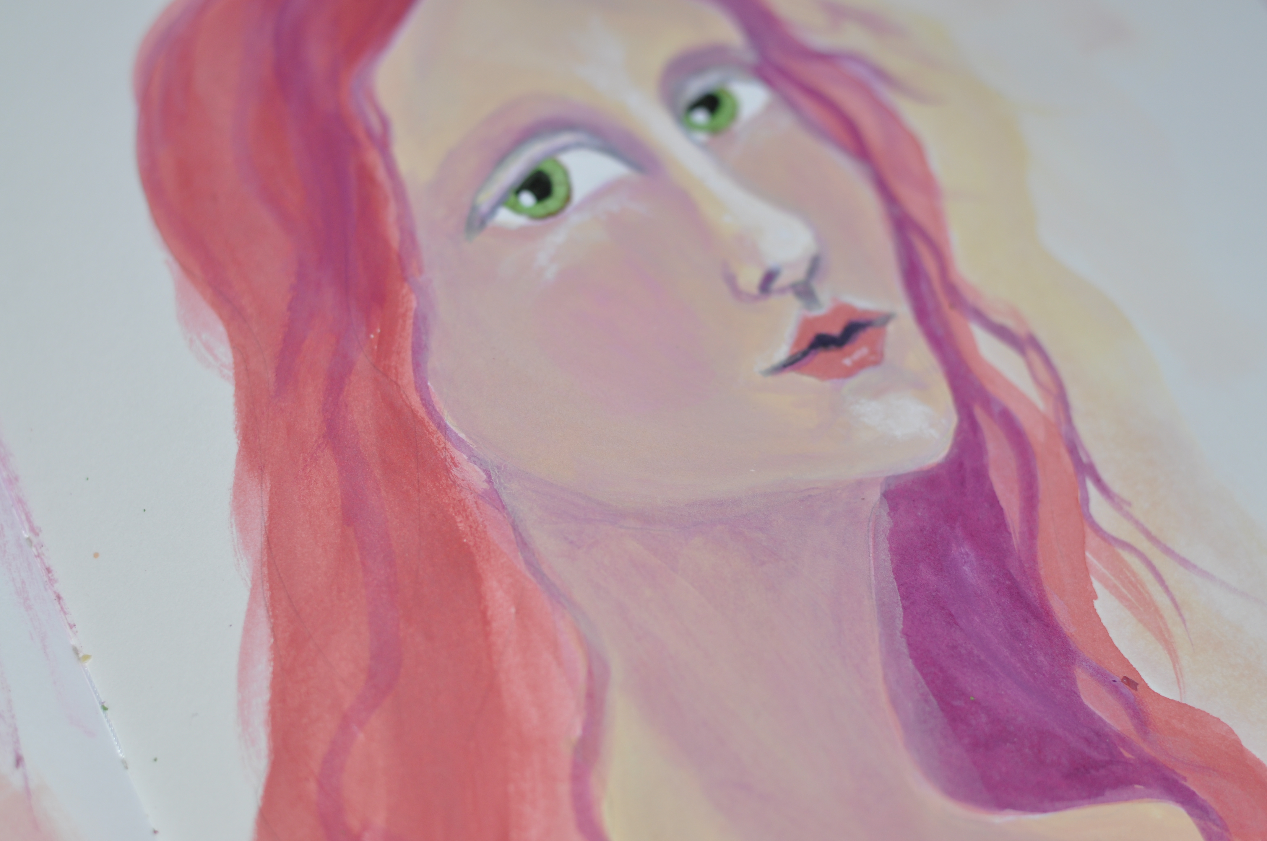 The beginnings, of a second attempt, at the first lesson in Radiant Faces. I’m happier with this one, as I changed the paper/book to a strathmores media journal…and the paper is so much better when water s added to the page.
